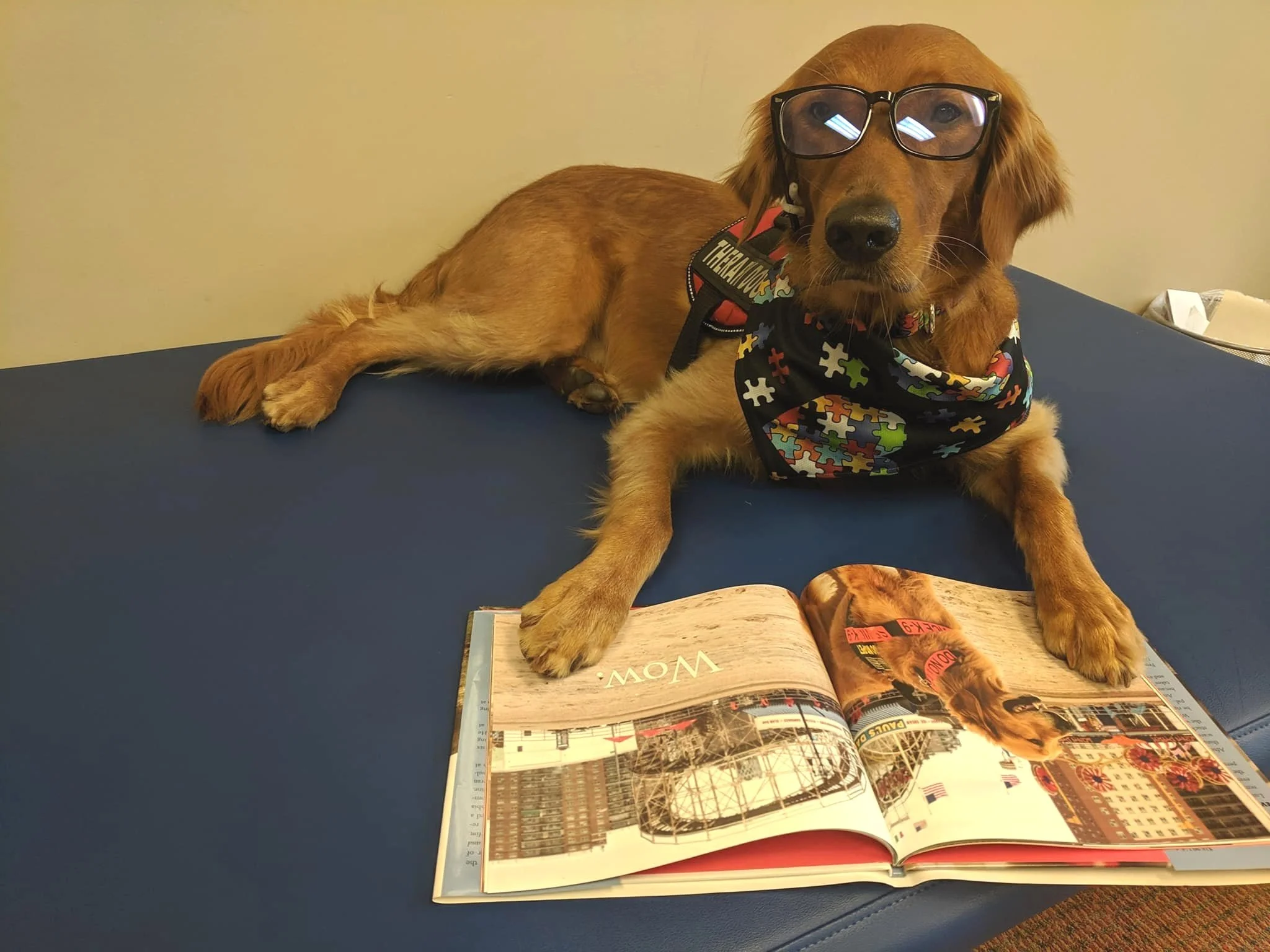 Gus is a gentle and affectionate Golden Retriever licensed as both a therapy dog and a Reading Education Assistance Dog (R.E.A.D.). With a natural ability to bring comfort and joy to those around him, he has touched the lives of many children in need of support. Gus has completed extensive training through a certified therapy dog program- Alliance of Therapy Dogs in 2019.